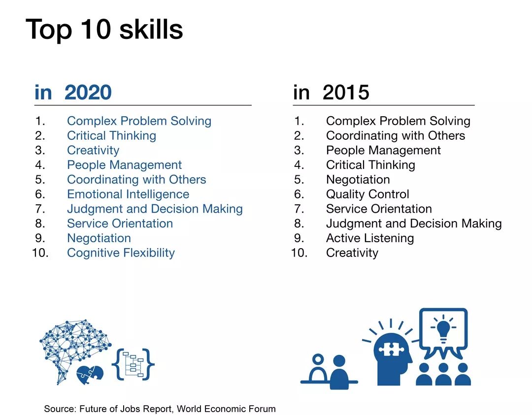 在这样的情况下,我们应该放弃在机械性的工作上和AI竞争,而是要把注意力转移到诸如创新、与人的沟通、批判性思维、解决问题、团队合作和共情等等这些AI没有办法实现的所谓"软能力"上。